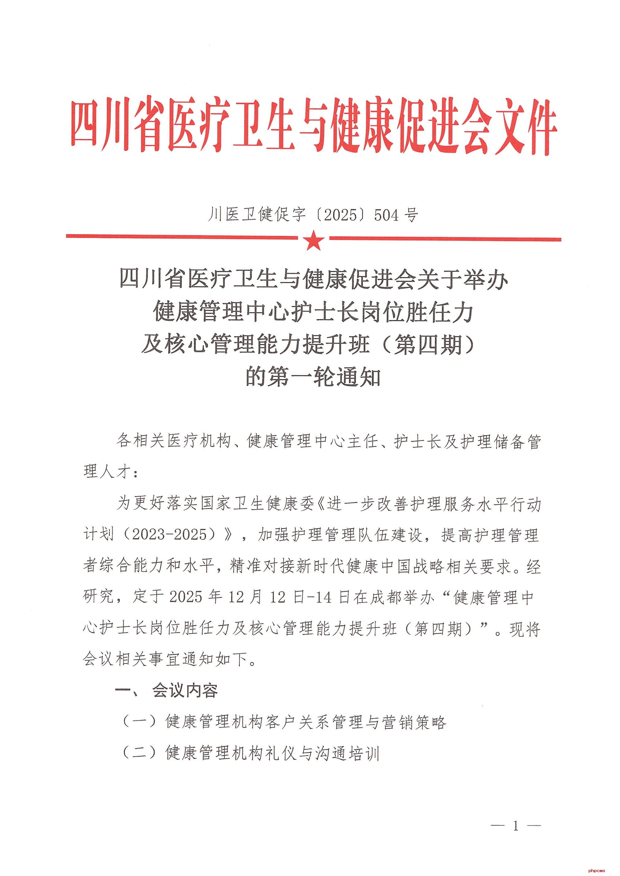 >学术培训 > 培训班>健康管理中心护士长岗位胜任力及核心管理能力提升班(第四期)报名通知