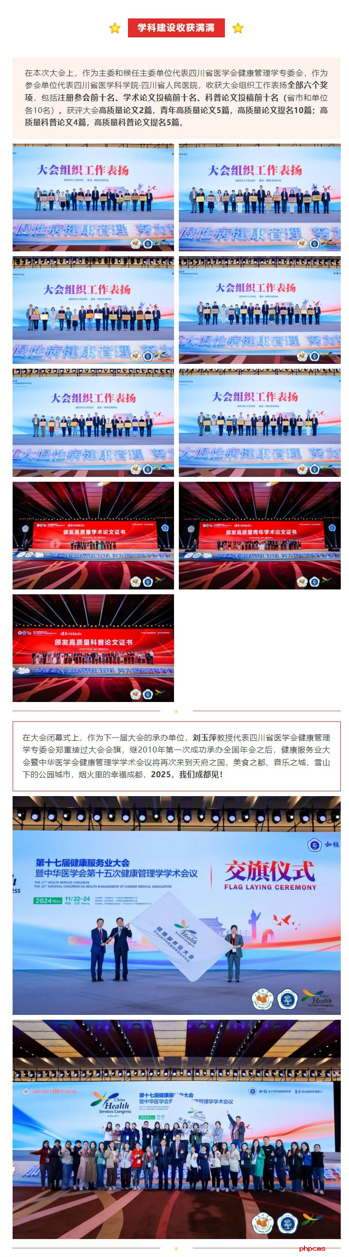 2024,京彩之城论健康;2025,天府之国欢迎您!健康管理中心/健康管理研究所学科团队精彩亮相第十七届健康服务业大会暨中华医学会第十五次健康管理学学术会议